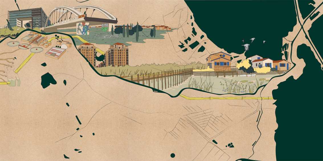 Bipolar a également fait appel à Pauline Goffin, architecte et illustratrice pour une représentation subjective et artistique du cours du Lez, de 11 mètres de long. Cette fresque a été un outil supplémentaire pour recueillir les témoignages des habitant·es.
