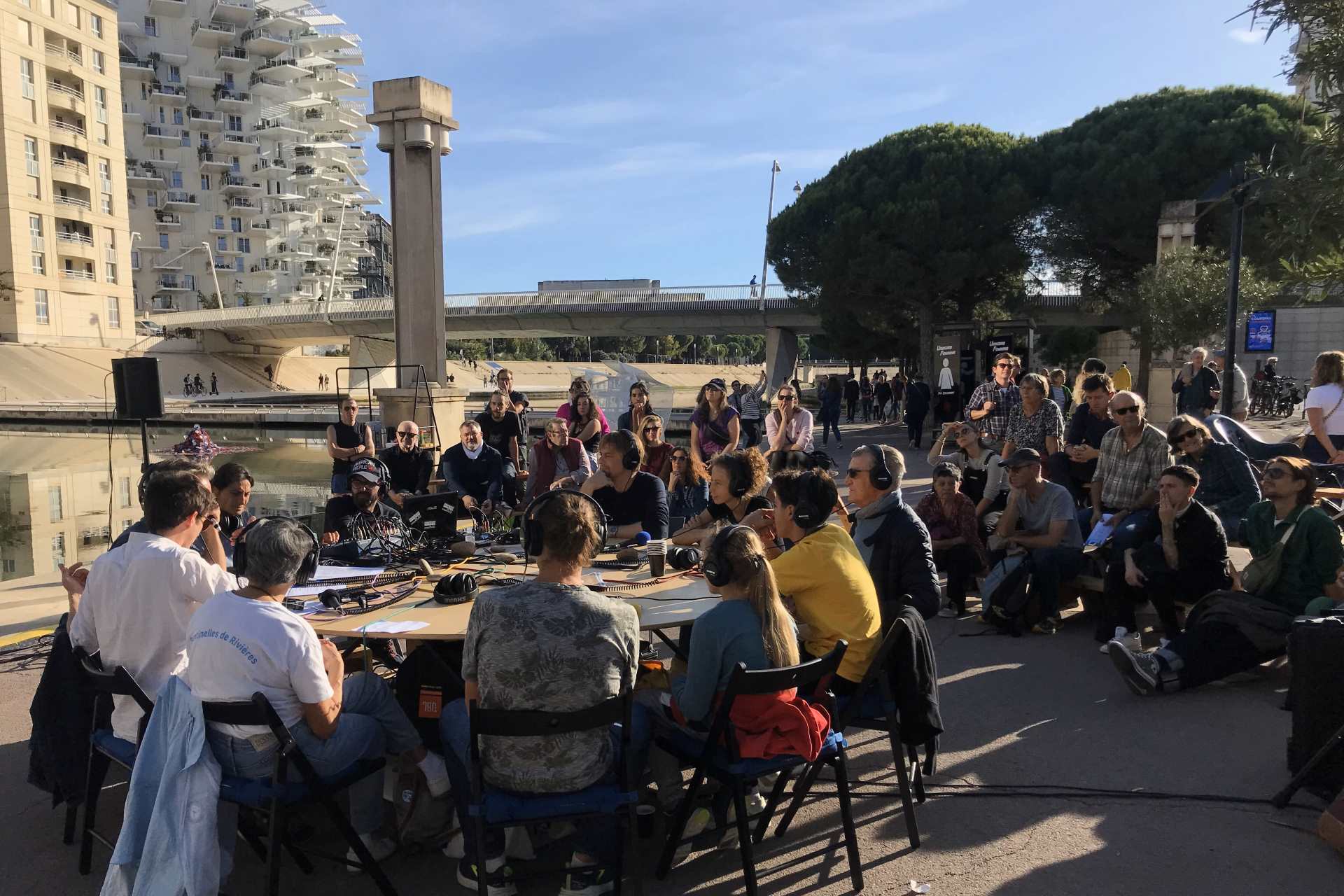 Afin de permettre aux montpelliérain·es de venir témoigner de ce conflit sensible avec le Lez, deux émissions de radios ont été imaginées par Bipolar puis réalisées en public et en direct sur les rives du Lez avec le soutien de Divergence FM.