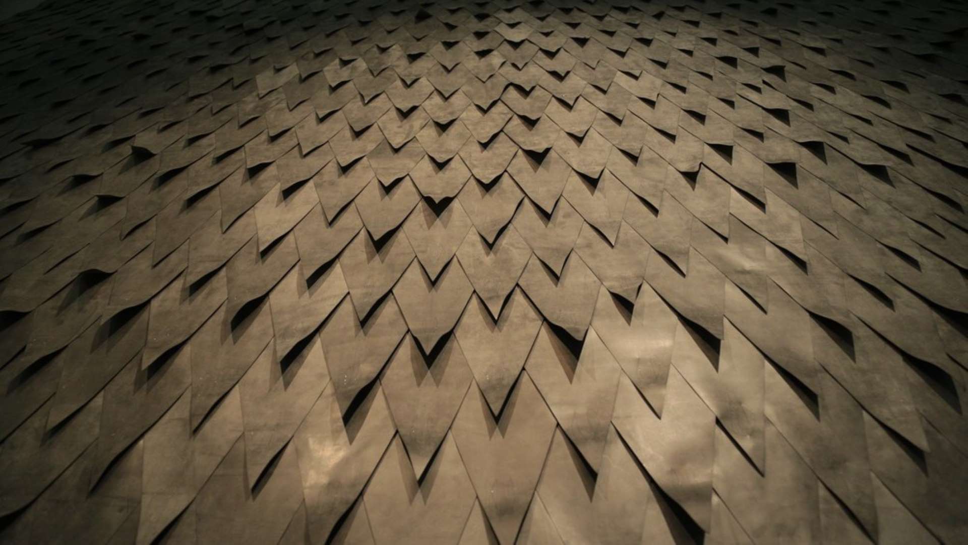 R.E.D. - Réponse électrodermale est une “matière-peau” sensible à son espace, à son public. Délicatement, les triangles positionnés sur la surface se soulèvent, se courbent, s’apaisent. Subtile interaction. Épiderme émotif. Selma Lepart interroge la machine, la vie, le physique. L’installation est dotée d’un rythme biologique et réagit aux stimuli extérieurs, aux mouvements des visiteur·rices, pouvant ainsi leur répondre par des états affectifs artificiels.